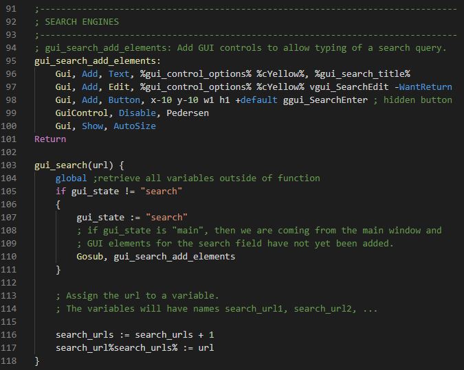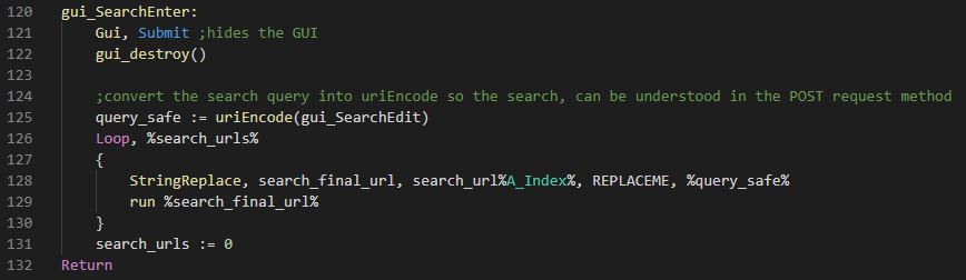 To launch the GUI, we created a Hotkey assigned to caps lock and space. Line 44 we check the GUI state to allow dynamic functionality to it, allowing open and close to the GUI and later we add additional element to the GUI, for example we enter “/” for Reddit as a command it creates new element(aka control) for the search query for that website.