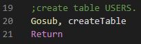 When we first create the database there will be no table in it, so we will create a table using label and Gosub that we learn previously.