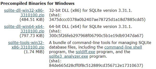 Link 1 is the SQLite database that we will be using, download the “Precompiled Binaries for Windows” and yes Windows because AutoHotKey can only be used in Windows. I only downloaded the 64-bit version, the SQLite tools are not needed.